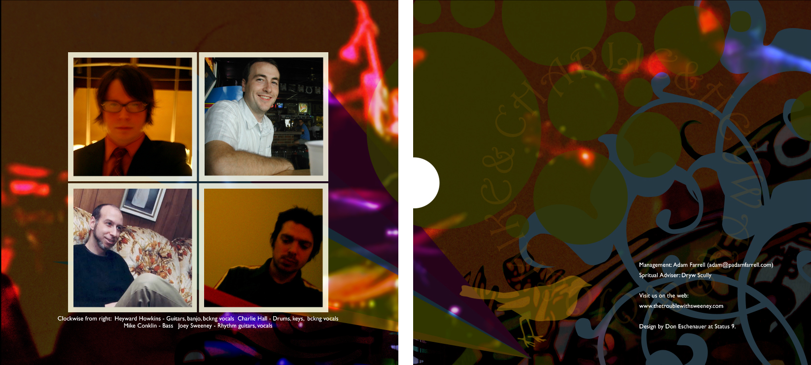For Ernest Jenning Record Co.: The Van Pelt “Sultans Demo” (EJRC203), “1994 Demo” (EJRC202), Various Ads, Site, Logo, Scoville Unit “Everybody Knows” (EJRC010), Drew Isleib “The Build” (EJRC014), Site, Drew Isleib “Sounds Through The Wall” (EJRC003), Poster, Risk Relay “Low Frequency Listener” (EJRC006), Kudzu Wish/Disband “At The Scene of the Accident” Split (EJRC004), El Sécondhand “Crack and Divide” (ERJC002), Denise Hradecky “Invisible Thread” (EJRC009), Scoville Unit “Closed Universe” (EJRC024), The Black Hollies “Crimson Reflections” (EJRC023)